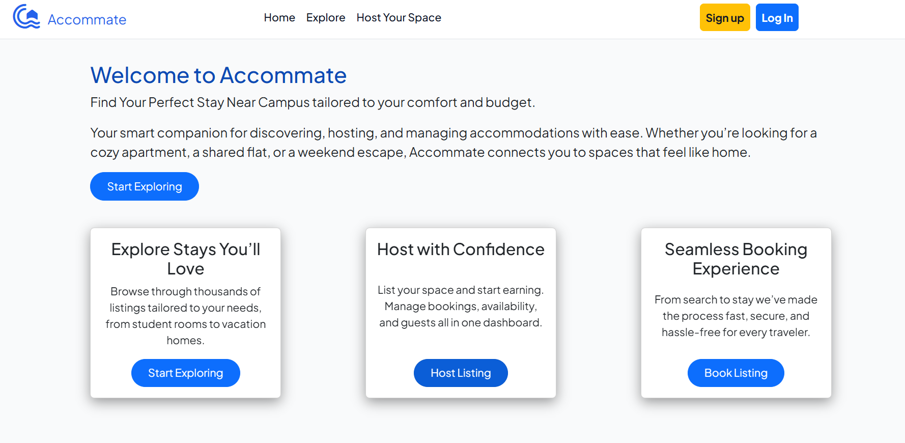 A Full-Stack accommodation platform for students to find and book stays near their campus.